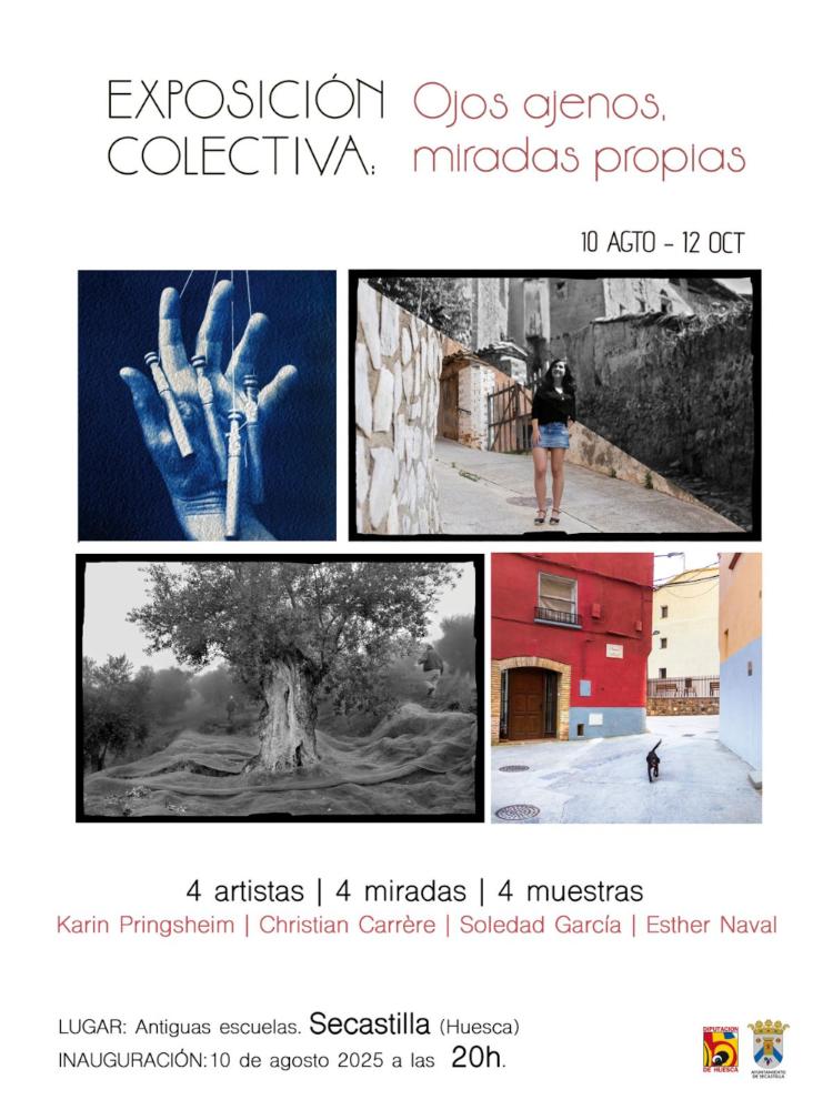 “Ojos ajenos, miradas propias” es el resultado del trabajo conjunto de Christian Carrère, Soledad García, Karin Pringsheim y Esther Naval, cuatro fotógrafos con trayectorias y técnicas diversas que han convergido en Secastilla para observar con atención, comprenderlo desde dentro y dialogar con su gente.